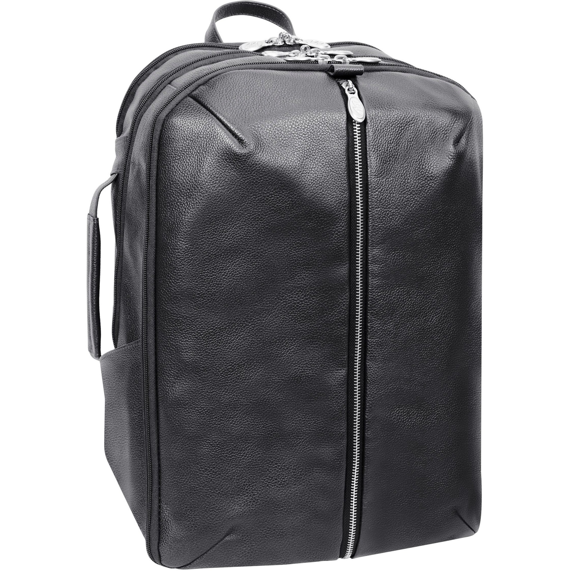 | Marketing Information | If you’re planning a business day trip this 17″ leather carry all backpack is the perfect travel companion to carry clothes and important devices you need for success. The top carry handle and pull-tab help open access to your stored items with ease. Front main vertical zipper compartment for storing clothing and travel essentials with tiedown straps. The two side pockets are perfect for keeping water bottles and umbrellas easily accessible. The small top zipper pocket keeps your phone and keys secure and easy to access. The middle compartment features a 17″ built-in laptop sleeve, a business accessory organizer, and an interior full-length zipper pocket. The back compartment comes complete with a secure tablet pocket and storage for files and documents. Keep your backpack comfortable with padded air mesh adjustable backpack straps with a piggyback side attachment or carry it like a briefcase with the side handle. |